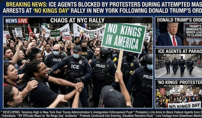 ICE Agents Blocked by Protesters During Attempted Mass Arrests at “No Kings Day” Rally in New York after Donald Trump’s Order